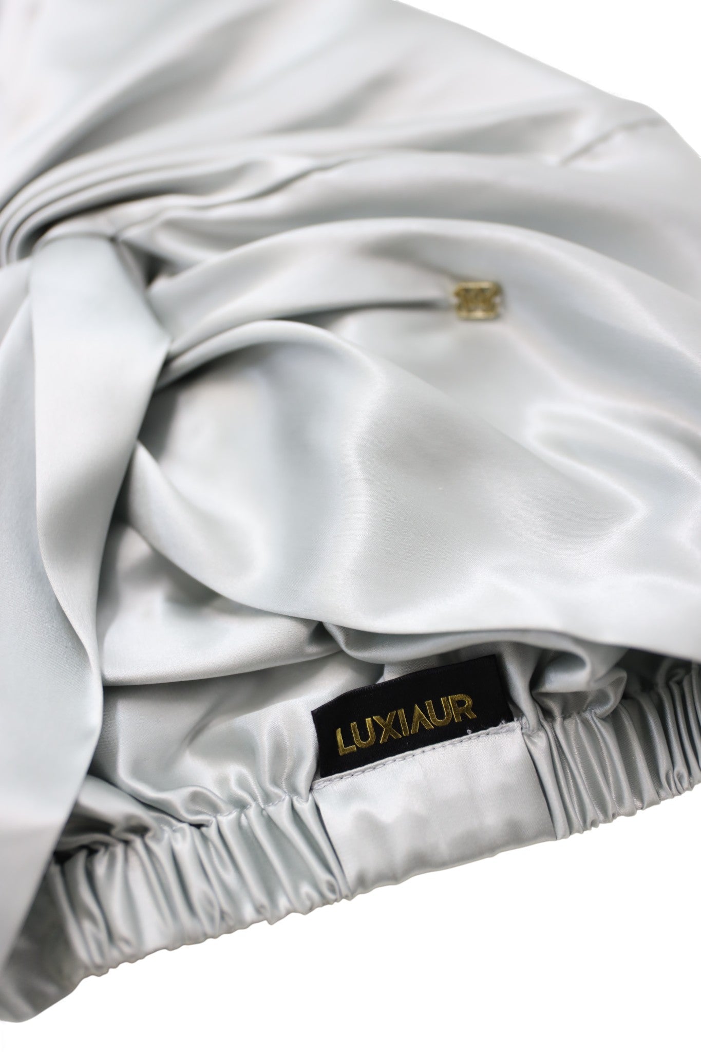 Designed in pure organic silk, the LUXIAUR turban protects natural texture and quiet shine as you rest.